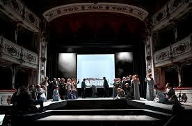 First, the theater experience itself. Until Saturday, I had only ever visited the house, never attended a performance. This time it was a whole new level: the theater dressed itself in its finest to welcome 300 Verdi devotees, andâbelieve it or notâthe staging actually extended into the audience! (And here Iâll mention the only ânegativeâ point of the evening: given the tiny size of the hall, and the fact that the front of the stage was barely used, why remove seats for a performance that had been sold out for weeks?)