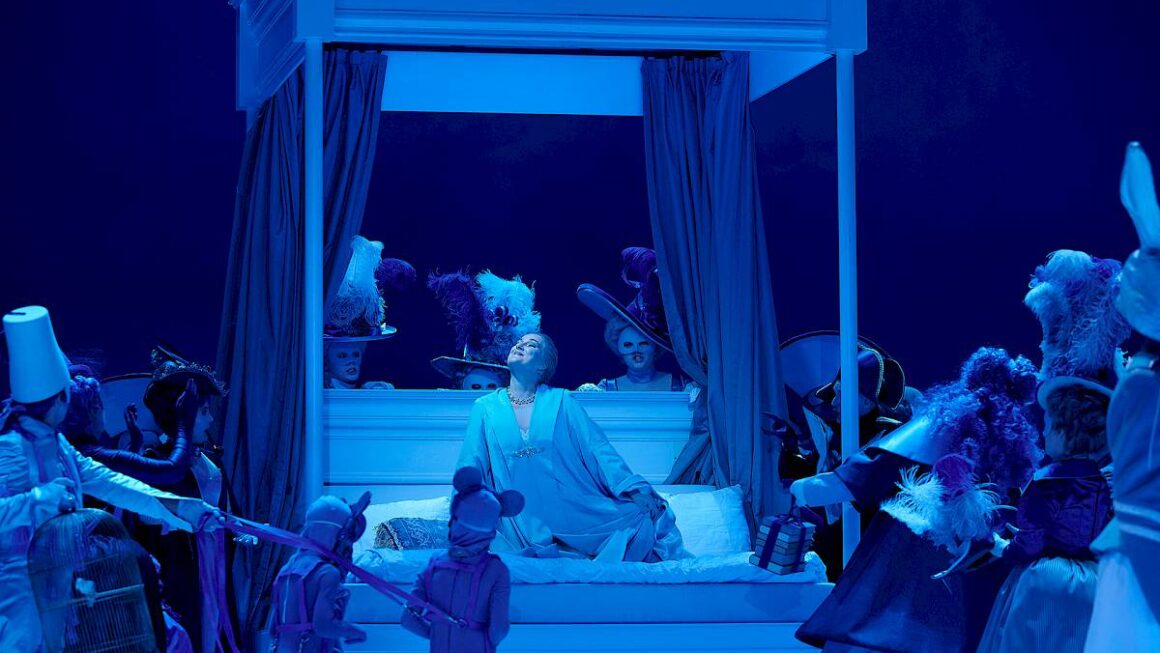 Finesse and charm are words that aptly describe this new production of Der Rosenkavalier at Opernhaus Zürich. Lydia Steier’s elaborate staging emphasises the contrasts between the worlds depicted, thanks to the flamboyant work of Gottfried Helnwein. The channel chosen: colours. Starting with the ageing blue in the Marschallin’s courtyard, decorated with bright egg yellow for Ochs’ first appearance. We immediately understand that it is he who heralds the next stages. This approach is not without meaning: it is this character who drives the plot forward. In the second act, we are immersed in an environment where the predominant colour is yellow… until Ochs enters, resplendent in bright red, a colour which, according to the aesthetic logic of the production, will dominate the third act – with the exception of the Marschallin, who is always associated with the blue that heralds the afterlife. A very clever choice, in that the colours can reflect not only the mood of the main actions taking place in the act, but above all the personalities of the main characters. An effective storytelling tool, aesthetically pleasing, and subtle enough not to offend the audience’s intelligence.