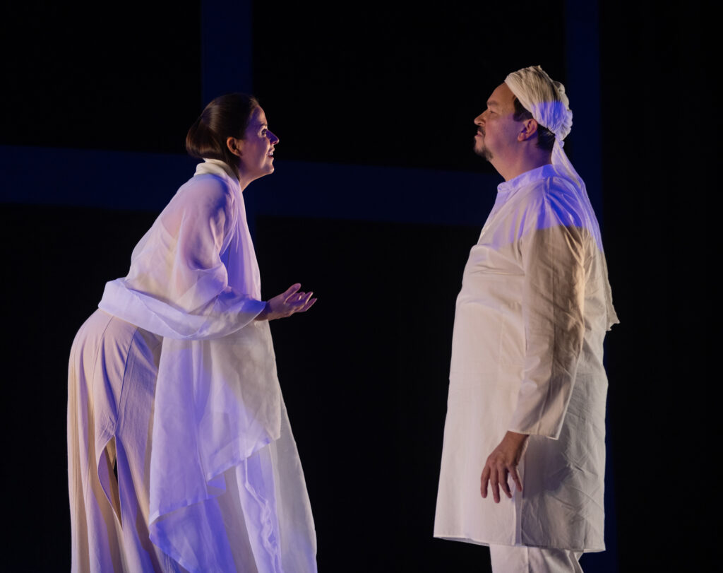 Erminie Blondel (Leïla) and Patrick Bolleire (Nourabad). ©Marc Chambon