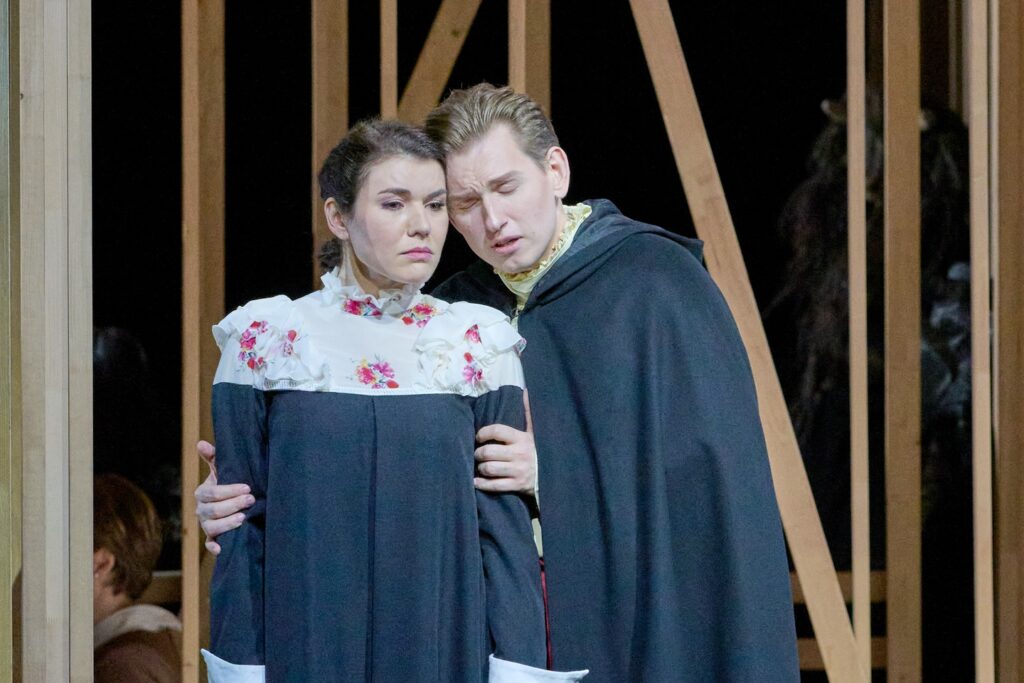 As for the Carmelites, Sylvie Brunet-Grupposo’s Madame de Croissy is literally tragic and terrifying, both in what she radiates and in what she declaims. Drawing on her native French, the still-young singer seems crushed under the weight of a life of suffering and deprivation, paradoxically sealed by an infinitely painful death. The revelation of the evening is Maria Motolygina, portraying a Madame Lidoine both wise and resolute. The voice is already full and powerful, the timbre warm and brilliant, and every intervention captivates. Particularly her final aria in the prison cell—the penultimate step before the ultimate apotheosis—arguably among the most powerful, if not the most powerful, in the entire repertoire. Maria Nazarova makes Sister Constance as sparkling as she is endearing and touching; Julie Boulianne embodies a Mère Marie equally convincing—both authoritarian and passionate—just like Stephanie Maitland’s edifying Mother Jeanne and Teresa Sales Rebordão’s pragmatic Sister Mathilde. The cast is completed by Michael Kraus, a Marquis de la Force both noble and anxious; Jörg Schneider, a confessor as resolute as he is concerned; Andrea Giovannini and Simonas Strazdas as the commissioners; Alex Ilvakhin as the officer; and Andrei Maksimov as the jailer.