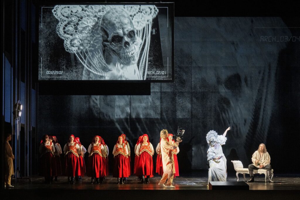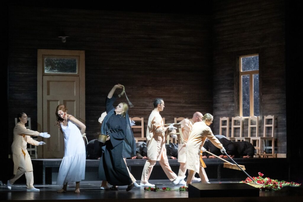Thanks to Claus Guth鈥檚 pared鈥慴ack staging, we witness both the Russia of deep tradition, with its harsh customs, ecstatic religiosity, tyranny and monolithic figures, and the Russia increasingly shaped by European influence, each unfolding seamlessly upon the stage. In parallel, those who contribute to the recreation of the five acts are themselves visible, their presence evolving as the opera progresses until they become part of the drama and suffer its consequences. The superb live video work of Jan Speckenbach and Marlene Blumert allows us to scrutinise the faces of the characters at close quarters: their anguish, their madness, their joy, all perfectly attuned to the musical transformations rising from the incandescent pit.