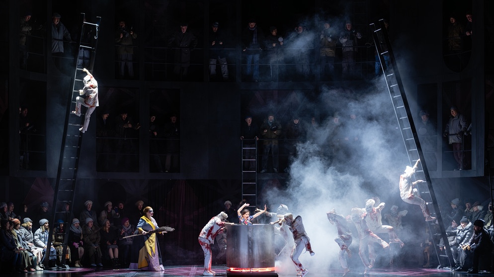 The chorus prepared by Christoph Heil is impeccable — precise, responsive, fully engaged in the scenic movement.