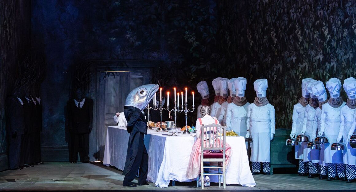 Richard Jones’s iconic staging withstands time with remarkable ease. John Macfarlane’s sets and costumes conjure a world where object theatre meets domestic surrealism, where fairy‑tale tropes are twisted without cynicism. The enchanted‑forest scenes of Act II — the animal ballet, the Sandman’s golden glow — took on an almost ritual dimension. The children reacted in waves: laughter, gasps, that wonderful spontaneous energy that turns every detail into an event.