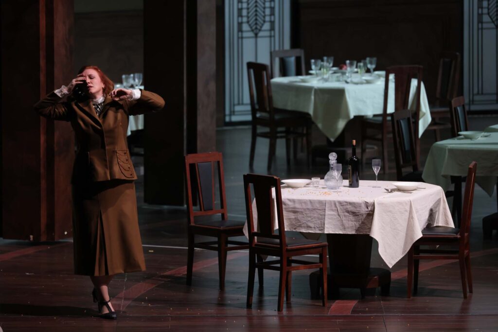 As rarely happens, the direction of Moscow’s Vasily Barkhatov is also a complete success; the most scandalous director, in the most scandalous opera, manages to avoid any scandal. The opera is set in the 1950s, in the sumptuous interiors of a luxury restaurant, and in the squalid rooms where the most brutal scenes take place. The opera is told using flashbacks; during the interludes, the police interrogations of Katerina and Sergei take place, where photos and murder weapons appear, and the story thus unfolds like a narration. Like a police report, with the protagonists fully clothed, the opera’s most famous scene, Katerina and Sergei’s sexual act, is also resolved, with the orchestra screaming the protagonist’s pleasure until the glissando of the trombones reproduces a full-blown ejaculation. The flashbacks are interrupted by the truck carrying the prisoners to Siberia bursting onto the scene; here the final tragedy unfolds with the only real transgression of the evening: Katerina douses herself in gasoline and sets herself on fire, dragging her rival Sonetka to her death as well.
