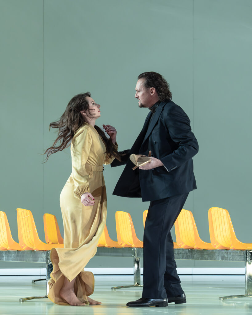 Delicate projection and meticulous diction lend great charm and deep humanity to Damien Pass’s portrayal of the Pförtner, just as Paul McNamara’s superb blinde Schwertrichter leaves a formidable impression: a career marked by the most demanding tenor roles has fashioned in this remarkable artist the ideal ambassador for the blend of wisdom and justice required by the part. The six singers (Glen Cunningham, Thomas Chenhall, Michał Karski, Pierre Romainville, Eduard Ferenczi Gurban and Daniel Dropulja) embodying the Richter are, for their part, every bit as exemplary as the rest of the cast, each contributing a distinctive hue to a palette of voices that makes the second act one of the evening’s high points.