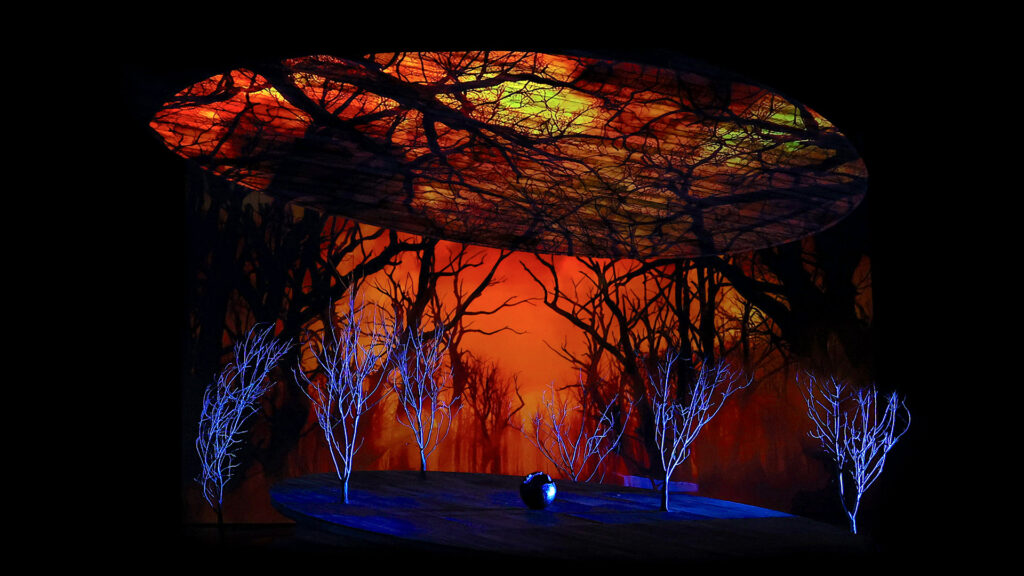 Dale creates a visually simple and captivating show, aided by the now ubiquitous video projections, more interested in recounting Breton legends than Schopenhauer philosophy. Onstage is present a large, movable circular platform, upon which a mirrored oval platform is suspended, creating the geometries within which the characters move. In the first act, the platform is the keel of the ship carrying Isolde to Cornwall. Dale does not fail to show us the background story on stage, with the duel between Morold and Tristan/Tantris. The sailors movements in the stormy sea are beautiful, and the dialogue between BrangĂ€ne and Isolde is well-defined, with the latterâa directorial licenseâpulling from the chest “Den Kopf des Jochanaan;! The second act is the least successful; the video projections are banal, and the play of light is lacking to adequately convey the night, the true protagonist of the act, and the turning off of the lamp that initiates the protagonists; extraordinary love duet is very little evocative.